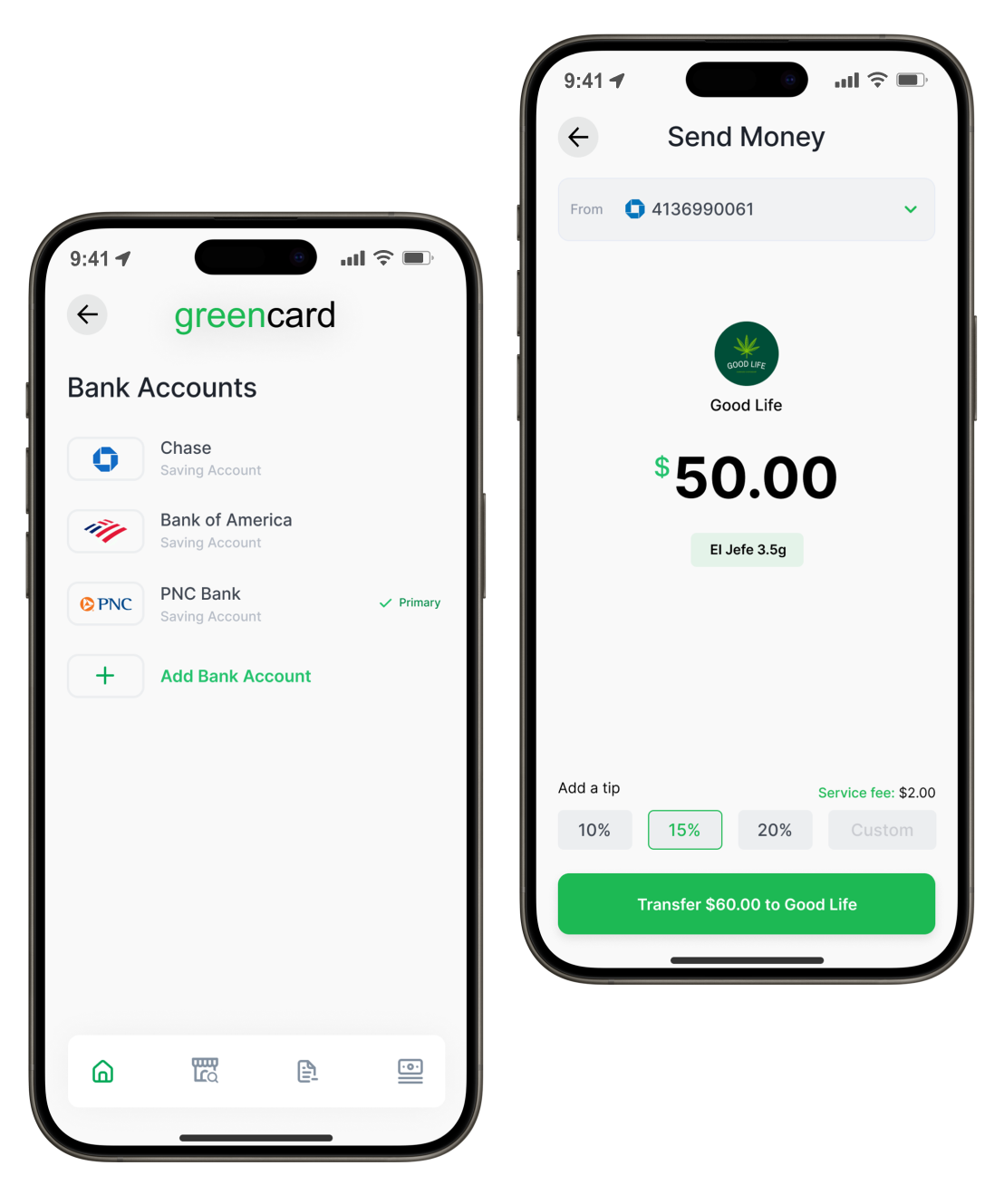 Create a Greencard account and then link it to one or more bank accounts. In a few minutes, you’re ready to go!